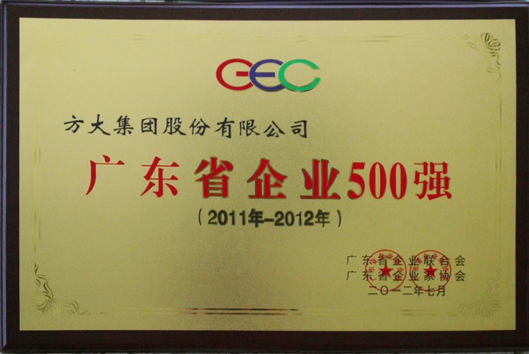 7月25日,“2012年广东省企业500强排行榜”新鲜出炉,方大集团荣登“广东省企业500强”榜单。