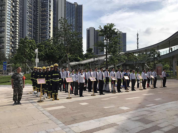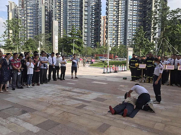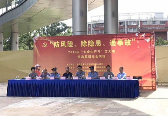 为检验深圳方大城安全预警系统有效性,强化业主及物业相关人员安全意识,提升应急避险、自我救护能力,6月27日下午,由深圳市南山区桃源街道办事处主办、方大城物业服务中心协办的“防风险、除隐患、遏事故”应急救援综合演练在方大城举行。桃源街道办主任李海滨,桃源派出所副所长林伟文,方大集团副总裁、置业公司董事长林克槟等参加演练。